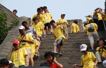中新網(wǎng)7月28日電 據(jù)廣東僑網(wǎng)消息,在人民大會(huì)堂參加完隆重的開營(yíng)儀式后,廣東省僑辦組織的550多名華裔青少年乘坐12部大巴,于7月25日下午浩浩蕩蕩的前往京城之旅的第一站——京北長(zhǎng)城沿線最著名的古關(guān)城居庸關(guān),勇于攀登的廣東團(tuán)營(yíng)員成為“中國(guó)尋根之旅”團(tuán)隊(duì)中的首批“好漢”,很多第一次到中國(guó)的華裔青少年實(shí)現(xiàn)了成為“長(zhǎng)城好漢”的夢(mèng)想。