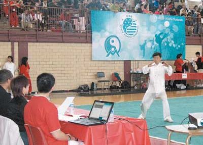 這次比賽分傳統(tǒng)、散手、器械、規(guī)定套路、太極等類,參賽選手有初學(xué)不久者,也有多次參賽的老資格運(yùn)動(dòng)員,參與熱情最高的是生長(zhǎng)在美國(guó)本地的青少年。