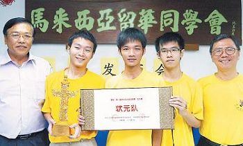 3位為國爭光的同學(xué)分別是巴生興華中學(xué)的黃家耕、山打根育源中學(xué)的張愷程以及吉隆坡中華獨(dú)中的傅仰輝,帶隊(duì)及指導(dǎo)老師是巴生興華中學(xué)的謝錫福老師。