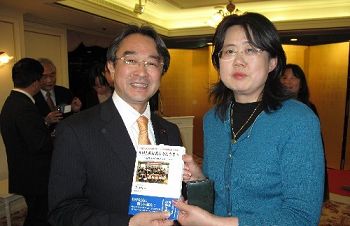 3月25日晚,日本眾議院議員、日中友好議員聯盟干事長近藤昭一在東京親切會見了日本僑報社社長張景子。張景子向近藤昭一介紹了有關中日作文大賽、特別是將于30日舉行的第五屆日本人漢語作文大賽頒獎式的情況,并向他贈送了剛剛出版的獲獎作品集《致中國旅行者--日本人的心聲》。近藤昭一勉勵日本僑報社繼續努力,為推動中日進一步友好作出更大的貢獻。圖為張景子向近藤昭一贈送《致中國旅行者》。 中新社發 段躍中 攝