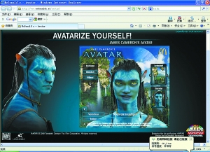 美國科幻大片《阿凡達》正在成為國內(nèi)網(wǎng)民熱烈討論的對象。在百度貼吧內(nèi),“阿凡達吧”內(nèi)帖子數(shù)量已經(jīng)超過13萬。眾多網(wǎng)民熱烈討論《阿凡達》電影劇情與特技,將其與《三槍》等國產(chǎn)大片電影進行比較,而且動手制作自己的PS,變身為阿凡達。麥當勞網(wǎng)站推出的“阿凡達變臉器”軟件,可以將用戶上傳的照片直接制作成納美人的模樣。網(wǎng)友只要提供一張清楚的照片,利用該軟件,就可以在不到2分鐘的時間內(nèi)變身為潘多拉星球上的納美人,擁有納美人兩個招風(fēng)耳、藍色皮膚、紅色的眼睛。該軟件分成了男版和女版,供網(wǎng)民自主選擇,還可以自主更換背后場景。網(wǎng)民不僅制作李宇春、姚明、郭德綱、阿嬌、小沈陽等娛樂明星的“納美照”,而且自己紛紛變身為“納美人”,在網(wǎng)上曬出來供大家欣賞。記者發(fā)現(xiàn),在百度上用“阿凡達變臉器下載”進行搜索,能找到2000多個網(wǎng)頁鏈接。許多網(wǎng)站還推出了該軟件的使用教程,吸引網(wǎng)民點擊。一家網(wǎng)站上還有網(wǎng)友發(fā)起了“納美人”選美大賽,網(wǎng)民紛紛上傳自己的“阿凡達頭像”,由網(wǎng)民投票進行PK。