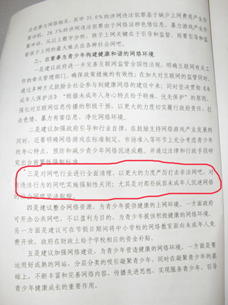 在嚴(yán)琦交給記者的提案文本中記者看到,提案中關(guān)于“出重拳為青少年構(gòu)建健康和諧的網(wǎng)絡(luò)環(huán)境”中第三條建議寫著:對網(wǎng)吧行業(yè)進(jìn)行全面清理,以更大的力度嚴(yán)厲打擊非法網(wǎng)吧,對有違法行為的網(wǎng)吧實施強(qiáng)制性關(guān)閉;尤其是對那些縱容未成年人沉迷網(wǎng)絡(luò)的社會網(wǎng)吧堅決取締。