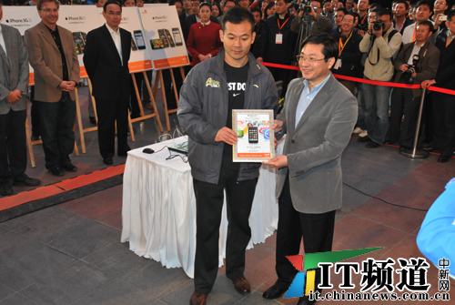 中新網10月30日電 下午6點,中國聯通iPhone手機正式在中國市場發售。中國聯通副總經理李剛現場售賣第一臺iPhone,同時中國聯通高層向現場購得手機的第一位機主頒發證書。