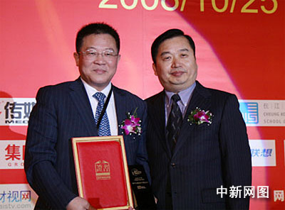 蘇寧電器總裁孫為民現(xiàn)場(chǎng)領(lǐng)取“中國(guó)最佳商業(yè)模式”獎(jiǎng)項(xiàng)