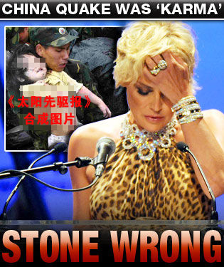 莎朗斯通那些違反人類道德的言論,遭遇全民譴責。西安的一些音像店昨日已將與她有關的作品下架,其網絡下載電影也遭到網友抵制。記者還發(fā)現,在一些美國網站上,美國網友也展開了對她的批判。