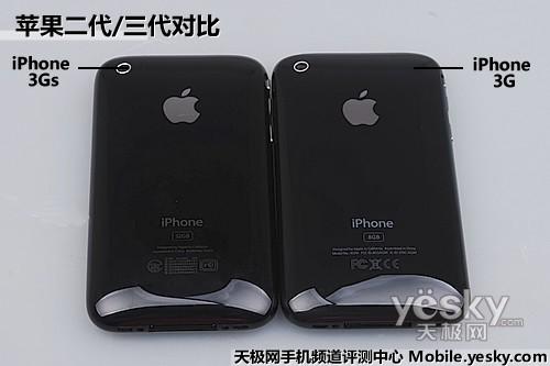 比較iPhone 3G和iPhone 3Gs,在外觀方面幾乎沒有差異,僅在容量標識上有所區別,一樣的機身尺寸和重量,若要是16GB版3Gs與iPhone 3G放在一起,恐怕真的很難從外觀上區分二者。