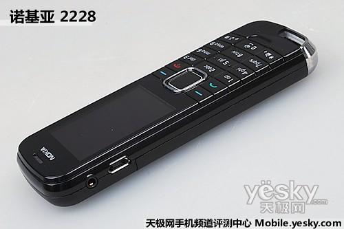 諾基亞2228機身左側集中了2.5mm耳機接口與B型miniUSB接口,融通性不錯,找到一根相搭配的數據不是難事。