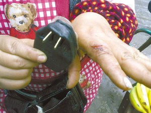 “這就是電池爆炸后留下的傷口。今天是第三天了,傷口還是痛。”昨天下午,記者見到了最近為手機電池傷透了腦筋的鄧女士,她揚起左手食指給記者看時,還有些心有余悸。因為此前的爆炸,她左手食指第三個關節處已皮開肉綻,一條近2厘米的傷口很顯眼。