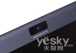 前面我們已經(jīng)對它頂蓋材料做過介紹,這種碳纖維選材結(jié)合LED背光能夠讓屏幕做得非常纖薄,側(cè)面厚度僅有5毫米。屏幕邊框同樣也采用這種合成材料,邊框設(shè)計(jì)很窄,在上方增加了六個(gè)膠皮墊腳,起保護(hù)屏幕的作用。在屏幕上方設(shè)計(jì)了一顆攝像頭,其有效像素為640×480,可以滿足一般網(wǎng)絡(luò)視頻需求。