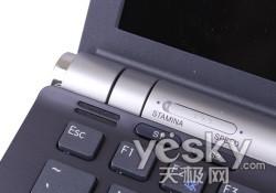 轉(zhuǎn)軸部分有一個(gè)STAMINA和SPEED模式切換鍵,這個(gè)切換鍵是專門針對這款機(jī)器獨(dú)特配置所設(shè)計(jì)的,由于Z55配備了雙顯卡,并且NVIDIA與IntelX4500并不支持熱切換,為了在省電和性能之間方便切換,索尼Z55加入了這個(gè)按鍵,在“持久(STAMINA)模式”中,它使用的是集成顯卡(移動(dòng)式英特爾®圖形媒體加速器 4500MHD)。而在“(SPEED)模式”中,VAIO Z5系列使用的是獨(dú)立顯卡(NVIDIA GeForce 9300M GS (GPU) 顯卡,用戶可根據(jù)實(shí)際需求,在使用中做不同模式切換。
