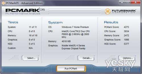 PCMark05 是考察筆記本綜合性能的測試軟件,在測試中我們采用了集顯模式,測試總成績?nèi)匀辉?000分以上,其中處理器和硬盤部分表現(xiàn)出色,內(nèi)存和顯示部分一定程度拉低了總成績,不過在獨(dú)顯模式下,分?jǐn)?shù)會(huì)有較大程度提升。