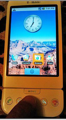 這款名為G1的手機是由宏達電設計和生產的。根據谷歌此前的演示,G1配置有觸摸屏和全字母鍵盤。
