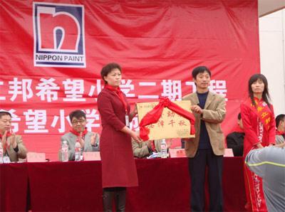 立邦(中國)有限公司再度讓一所希望小學(xué)注入彩色的夢想。2008年10月20日,立邦公司在山西捐建的一所希望小學(xué)二期彩色希望小學(xué)工程竣工。上午九點(diǎn),在雄壯的國歌聲中,立邦太谷希望小學(xué)二期工程暨彩色希望小學(xué)落成儀式正式開始。立邦公司領(lǐng)導(dǎo)同太谷縣副縣長、太谷教育局局長及河?xùn)|鄉(xiāng)書記、希望辦的領(lǐng)導(dǎo)一起,為其揭牌并參加當(dāng)天舉行的立邦捐贈(zèng)儀式,并參觀校園文化藝術(shù)節(jié)作品、觀看師生表演。
