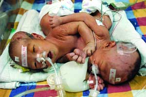 胸腹相連,兩個小生命緊緊地連在一起。只是他們并不知道,父母和醫生正為他們的命運擔憂。