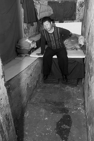 昨日(9月25日)13時,記者來到李先生家,地下室的門口僅用一個棉布簾子遮擋,里面漆黑一片。記者跟著李先生跌跌撞撞地下了樓梯,借著手電筒的光亮看到,下臺階的木制梯板已經(jīng)腐蝕,走進地下室,里面非常陰冷。李先生說,里面只有一間小屋,三口人在家時,不能全部都站著,那樣全家人都轉(zhuǎn)不過身,屋里唯一供家人取暖的就是一面火墻,自己在墻邊多砌了一條小火墻,這樣全家人冷了就可以到上面坐一坐。李先生一家住在用木板搭的床上,而且已經(jīng)住了20多年,全家人不同程度地患上了風(fēng)濕病。
