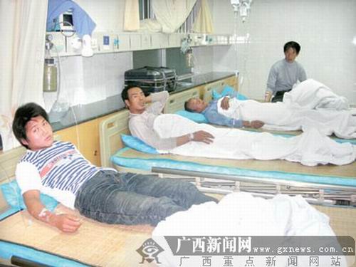 小楊告訴記者,出現中毒癥狀后,林場負責人就立即通知了120急救中心。晚上7時30分左右,有中毒癥狀的工友就陸續被送到南寧市第二人民醫院了。“我是晚上8時許來到醫院的”。