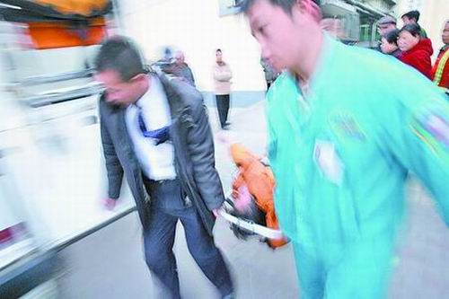昨天下午5時20分,記者趕到桐柏南路227號院時,正趕上急救人員抬著一名嘔吐不止的女子上救護車。女子大聲哭喊著,不時用手抓著胸口。在院內(nèi)1號樓4單元門口,5名醫(yī)護人員正在搶救一名躺在地上的婦女。此時,心電圖的顯示器上,已經(jīng)是一條直線。據(jù)住在4單元一樓西戶的張老太太介紹,下午1時許,他們請了兩名三鼎家政公司的女保潔員到家里打掃衛(wèi)生。兩人一開始都在廚房里打掃,到了下午4時50分,其中一個比較年輕的讓另一個人去打掃廁所。此人到廁所里后,拿出一個藍色的塑料瓶,把里面的液體倒進便池中開始清刷,不到兩分鐘,她就喊著“我受不了啦”從廁所里跑了出來,然后拉開房門就跑到了外面。等較年輕的女保潔員跑出去后,她已經(jīng)癱倒在地上,大口大口地喘氣。幾分鐘后120趕到,她已不會動了。