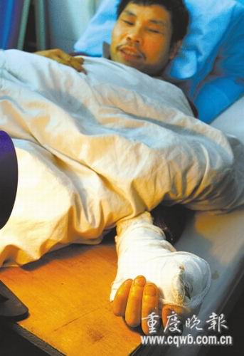 一家人歡歡喜喜殺肥豬過年,不料,被捅了一刀的大肥豬突然牢牢將殺豬人的手指咬在嘴里。前天(12月24日)下午,躺在病床上的渝北區(qū)農(nóng)民張?zhí)熨F哭笑不得,雖然手指已接回,但5000多元的醫(yī)療費(fèi)已遠(yuǎn)遠(yuǎn)超過宰殺年豬的價值。