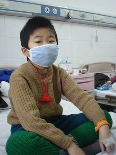 昨日下午3時,記者進入軒軒的病房,見有人來,軒軒勉強地從病床上支撐著坐了起來,一副口罩掛在孩子稚嫩的臉上,將整個面部遮擋了大半部分,只是一雙雖受病痛折磨依然眼光堅毅的眼睛露在了外面。萬玲告訴記者,這是因為怕細菌感染引起更糟糕的結果,所以遵醫囑戴起來的,每天只可以摘下一小會。小宇軒看到記者并沒有顯出害怕,但是虛弱的表情已經寫在了臉上,孩子的身上開始出現很多的血印。一雙原來白嫩的小手已清晰可見蠟黃色了,手背上則是剛扎完針包著的紗布。