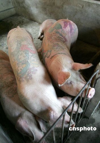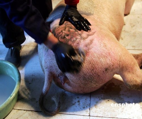 圖:藝術家給豬紋身 豬皮可賣百萬(2)