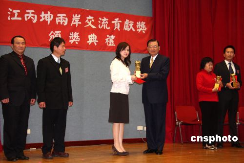 1月15日,海基會董事長江丙坤出席“兩岸經貿合作與交流研討會”,并頒發(fā)“江丙坤兩岸交流貢獻獎”。得主包括臺灣大學環(huán)境工程學研究所教授駱尚廉、夏潮基金會董事長宋東文等人。中新社發(fā) 陳立宇 攝