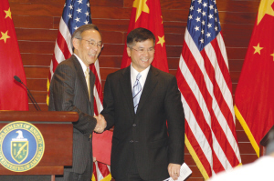 奧巴馬1月20日就任美國(guó)第44任總統(tǒng)當(dāng)日,華裔科學(xué)家、諾貝爾物理獎(jiǎng)得主朱棣文作為首批7位新內(nèi)閣部長(zhǎng)之一,得到參議院的確認(rèn)。一直提倡綠色生活的朱棣文獲任能源部長(zhǎng),顯示奧巴馬對(duì)發(fā)展新能源、綠色產(chǎn)業(yè)和應(yīng)對(duì)氣候變化的重視。