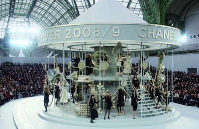 近日,Chanel在北京四季酒店舉辦了08秋冬時裝新品發(fā)布,一場華麗的“旋轉(zhuǎn)木馬”秀成為北京時尚圈一大亮點。在“旋轉(zhuǎn)木馬”設(shè)計里,其實并沒有木馬的影子,菱格紋包、珍珠項鏈、雙C標(biāo)志、鑲著滾邊的Chanel外套與浪漫蝴蝶結(jié)等經(jīng)典圖騰俏皮地迎接著人們的目光。