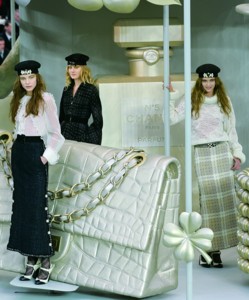 本場時裝發(fā)布最大的特色在于居然沒有搭配任何配飾。卡爾·拉格斐解釋:“我想呈現(xiàn)一個沒有飾品搭配的系列設(shè)計,所有的香奈兒經(jīng)典配件都已經(jīng)出現(xiàn)在舞臺上,這回我想呈現(xiàn)的,是一種時尚態(tài)度。”