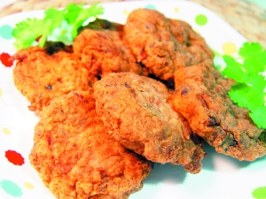 材料:鯪魚滑(230克)、紅蘿卜(1/4根)、黃彩椒(1/4只)、蔥(1根)、香炸粉(1杯)
