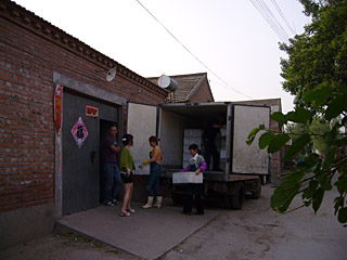 晚上六點鐘,趙梅(化名)準時來到了位于通州區臺湖鎮田府村373號,一輛中型貨車緩緩駛入了這座民房旁邊的車庫,隨著后車廂門的打開,她和其他8個工人熟練搬起裝滿使用過的“餐具”的箱子,從原本緊閉的大門里進去。