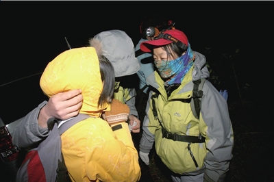 驢友獲救后激動地相擁在一起。 記者張沫攝
