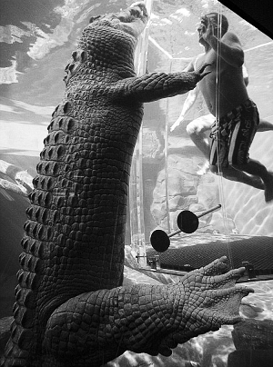 最近,澳大利亞達爾文市中心一家主題公園新開設項目“死亡之籠”,迎合愛冒險游客的心理。游客被關在一個透明籠中,與籠子一同沉入生活著兇猛咸水鱷的水池中,近距離體驗“與鱷共舞”的感受。