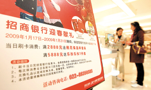 今年春節(jié),幾乎各家銀行都推出了刷卡消費(fèi)贈(zèng)送獎(jiǎng)品的活動(dòng),市民不妨有計(jì)劃地多用用自己手里的銀行卡,春節(jié)過(guò)后說(shuō)不定就能獲得意想不到的大獎(jiǎng)了。(記者 王婷)