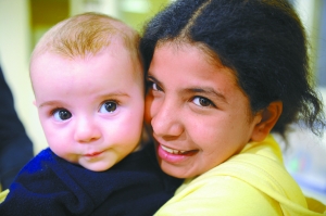 2月1日,巴黎,諾喬德·阿里(右)與一名兒童合影。