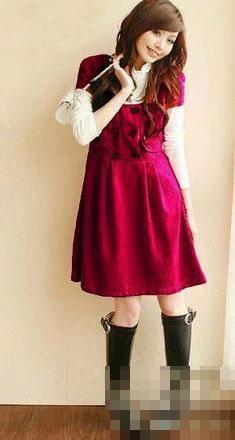 紅色的連身長裙切合了2月新年的氣氛,也顯示出白羊座女生熱情且天真的性格,黑色尖頭長靴穿出修長美腿,稍微露出的小腿顯得不落俗套。如果加上長襪,就顯得累贅了,要小心喔!