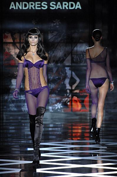 2月23日,在西班牙首都馬德里舉行的時(shí)裝周上,模特展示西班牙設(shè)計(jì)師安德烈斯·薩爾達(dá)的時(shí)裝作品。當(dāng)日,在2009/2010秋冬時(shí)裝流行趨勢(shì)展上,安德烈斯·薩爾達(dá)的新款內(nèi)衣作品展現(xiàn)了女性的感性與誘惑,打造出被神秘光環(huán)包圍中驚艷、性感而狂野的女性形象。 新華社記者陳海通攝