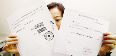 昨日,大坪,李麗正出示司法鑒定書和市婦聯的群眾來訪答復函 記者 梁杰 攝
