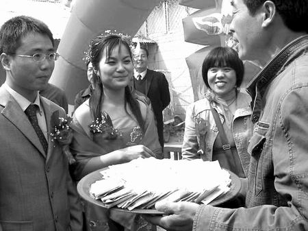 楊宏偉告訴記者,相對于形式,他更看重的是內涵。“現在的婚禮往往想方設法請來眾多高級轎車,然后在豪華賓館擺上若干桌酒席,請親朋好友來吃一頓,既鋪張浪費又沒多大意義,還不如辦得簡單些,用節約下來的錢做些更有意義的事。”楊宏偉說,他將這個想法告訴妻子和父母后,得到他們的支持。