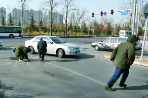 昨早8時(shí),一輛金杯車從石景山路與上莊東街相交路口欲拐向去八寶山殯儀館西門時(shí),突然車上撒下許多硬幣,兩位中年人跑向路口撿錢,車輛不得不暫停。當(dāng)另一輛車駛?cè)氚藢毶綒泝x館西門時(shí),再次撒硬幣,兩位老人迅速跑向車旁撿。