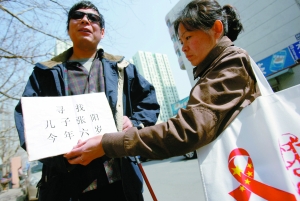 昨日上午9時許,在豐臺區第二幼兒園門口,一戴墨鏡、拄拐杖的盲人男子舉著“尋找兒子張陽”的牌子。男子自稱叫張進亮,安徽人。據他介紹,2006年初,其與女友王秀梅因感情問題通過法院解除了同居關系,兒子張陽由王秀梅撫養,此后,他再沒見過張陽,但一直能聯系上王秀梅。直到今年春節,王的手機換了號碼,從此,他與兒子也失去了聯系。因為王秀梅說過在豐臺區生活,所以他堅信兒子在豐臺的幼兒園就讀。張進亮說,此前他已經找了10多家幼兒園,但一直沒有張陽的消息。