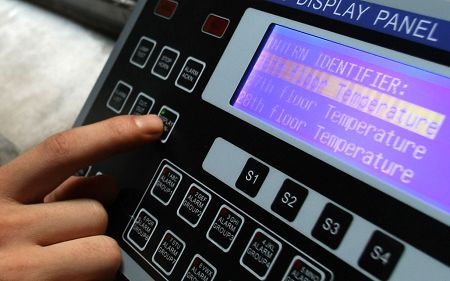 在昨日的試驗中,工作人員在26層電梯門上方的煙感器附近點燃打火機,當溫度超過58℃后,樓道內的語音報警響起,“各位業主,本樓層發生火災,請不要驚慌,本樓層電梯暫時停止使用,請業主改乘其他樓層的電梯疏散。”隨即,26層的電梯按鈕“失靈”,其他樓層電梯仍正常運行。