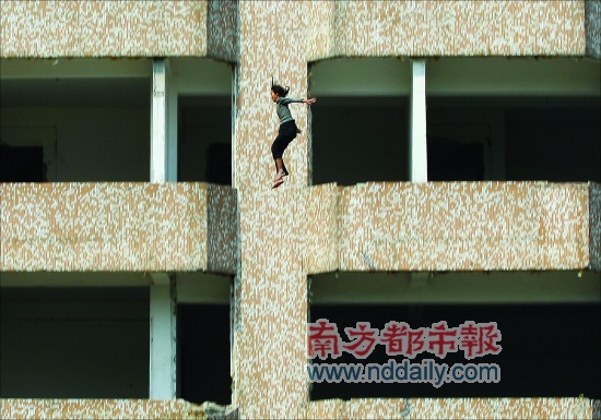 “我們一起跳吧”,當(dāng)端坐在莞城可園南路一棟6層拆遷樓頂?shù)呐诱f完這話后,雙手張開,縱身跳下。時間仿佛定格在昨日上午9點43分。幾秒鐘后落在充氣墊的女子微微抬了抬腳,現(xiàn)場有人喊出“她還活著”。