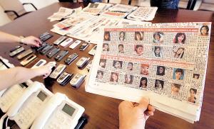借開門的一瞬間,化裝成物管人員的民警發現,屋內有3名女子手捧電話,一邊在翻看本子,一邊接電話。在一旁,幾十部手機、小靈通響個不停。