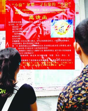 這張大紅海報十分喜慶,上貼一張七夕圓月牛郎織女相會圖,留下征婚者的電話號碼、QQ號碼及網絡博客地址,另有一些真情話語。乍一看,這“小偷”征婚還真蒙混人,可走近一瞧,才發現標題上的“小偷”下面有五個小字注釋:指偷心的人。