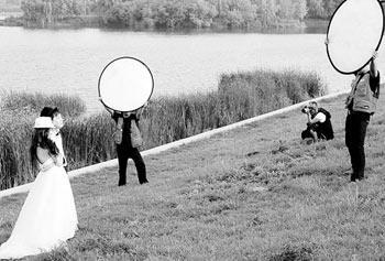 10月21日,記者無意中發現一家婚紗影樓的宣傳海報——婚旅攝影,其概念是組織新人邊去海邊旅游邊拍攝婚紗照。據了解,這家婚紗店是在沈經營多年的一家影樓新開的“主題攝影店”。經營者很前衛,將這個店直接定位為婚旅攝影,拍攝的主要是外景。