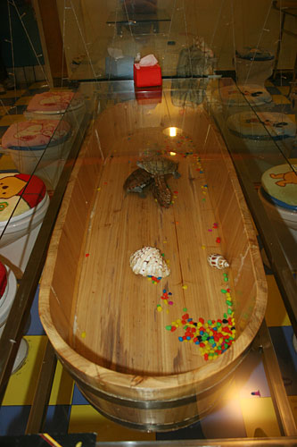 便便滿屋飯?zhí)糜幸晃幻琅习迥铮刻於己荛_心的樣子。在談到為什么會開這么一家衛(wèi)浴主題的餐館時(shí),店主李女士說:“原來看到國外有人做過類似的主題餐廳,我很喜歡,就開了一家。我們的餐具都是專門定制的,非常特殊,充滿童趣。現(xiàn)在我們的顧客大部分是10到35歲的年輕人,目的是讓他們能在這里解壓、釋放。”