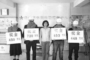 網(wǎng)民點(diǎn)評(píng):從圖上來看,中獎(jiǎng)獎(jiǎng)金是從貴州省體育彩票管理中心頒出的,領(lǐng)獎(jiǎng)人頭戴棒球帽,胸前戴朵大紅花,為了不被拍到正面,全都低下了腦袋。“領(lǐng)獎(jiǎng)該高興啊,從這圖來看,怎么看都是很沮喪。”網(wǎng)民說,下次再有中獎(jiǎng)?wù)撸纱喔銈(gè)蒙面舞會(huì)。