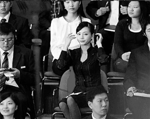 11月16日13時,對中國進行國事訪問的美國總統奧巴馬走進上海科技館會場,與中國青年展開對話。但是和奧巴馬的演講相比,現場攝影記者對一名黑衣女子表現出了更大的興趣。這名美女在現場脫掉紅色外套露出黑色套裝的全過程被記者用相機記錄下來,被制作成GIF動畫上傳網絡,隨后這組動畫在網上論壇以及QQ群里廣泛傳播,隨后又有網友將奧巴馬演講視頻中有關該女子的片段截圖上傳,黑衣美女的美貌和氣質迅速傾倒眾人。