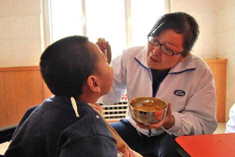 儀式結束后,雅士利愛心小組在青海省慈善總會領導的引領下來到西寧市兒童福利院。在福利院四樓,愛心小組與孤殘兒童一起做互動游戲,現場喜氣洋溢、充滿歡聲笑語。隨后,愛心小組在醫護人員的指導下仔細、認真地為孤殘兒童喂食午餐,這一幕,如冬日暖陽一般溫暖著孩子們的心靈。在福利院的大廳里有一個功德園,上面記錄了歷年來為兒童福利院捐款、捐物的單位和個人的名單和捐助金額,其中有國內外福利機構以及省內外的企業和個人。據李永蓮院長介紹,自兒童福利院成立以來,受到了社會各界人士的極大關懷和幫助,從1998年至今,西寧市兒童福利院共接受社會各界捐款、捐物有人民幣954719.46元,130美元,2725歐元。李院長說,社會各界對孩子們的關注和愛護,給孩子們帶來了希望,有力地促進了公益、福利事業的全面發展。
