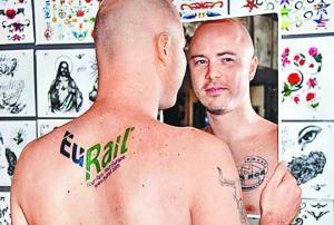 信息時報綜合報道 據(jù)英國媒體3日報道,澳大利亞一名失業(yè)漢知道雙親渴望到歐洲旅行后,為讓他們今年有個難忘的結(jié)婚周年紀(jì)念,毅然向歐洲鐵路公司提出建議,他把該公司的標(biāo)志賣廣告文在身上,換取兩張免費歐洲游車票,沒想到最后竟得償所愿。